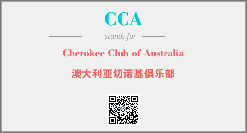 上述内容是“Cherokee Club of Australia”作为“CCA”的缩写,解释为“澳大利亚切诺基俱乐部”时的信息,以及英文缩略词CCA所代表的英文单词,其对应的中文拼音、详细解释以及在英文中的流行度和相关分类、应用领域及应用示例等。