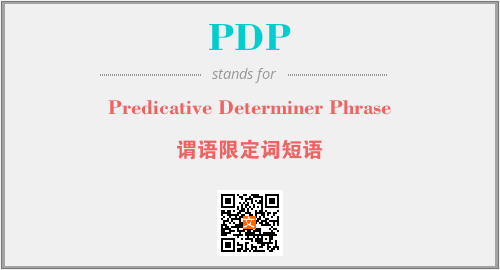 英文缩略词“PDP”经常作为“Predicative Determiner Phrase”的英文缩写来使用,中文表示:“谓语限定词短语”。本文将详细介绍英文缩写词PDP所代表英文单词,其对应的中文拼音、详细解释以及在英语中的流行度。此外,还有关于缩略词PDP的分类、应用领域及相关应用示例等。