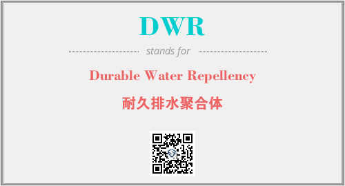 上述内容是“Durable Water Repellency”作为“DWR”的缩写,解释为“耐久排水聚合体”时的信息,以及英文缩略词DWR所代表的英文单词,其对应的中文拼音、详细解释以及在英文中的流行度和相关分类、应用领域及应用示例等。