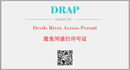 英文缩略词“DRAP”经常作为“Devils River Access Permit”的英文缩写来使用,中文表示:“魔鬼河通行许可证”。本文将详细介绍英文缩写词DRAP所代表英文单词,其对应的中文拼音、详细解释以及在英语中的流行度。此外,还有关于缩略词DRAP的分类、应用领域及相关应用示例等。