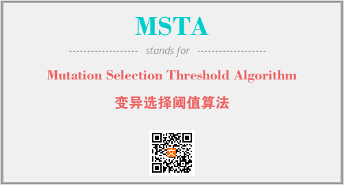以上为Mutation Selection Threshold Algorithm英文缩略词MSTA的中文解释,以及该英文缩写在英语的流行度、分类和应用领域方面的信息。