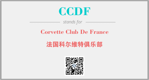 上述内容是“Corvette Club De France”作为“CCDF”的缩写,解释为“法国科尔维特俱乐部”时的信息,以及英文缩略词CCDF所代表的英文单词,其对应的中文拼音、详细解释以及在英文中的流行度和相关分类、应用领域及应用示例等。