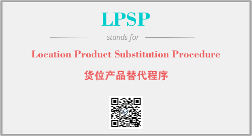 英文缩略词“LPSP”经常作为“Location Product Substitution Procedure”的英文缩写来使用,中文表示:“货位产品替代程序”。本文将详细介绍英文缩写词LPSP所代表英文单词,其对应的中文拼音、详细解释以及在英语中的流行度。此外,还有关于缩略词LPSP的分类、应用领域及相关应用示例等。