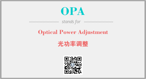 上述内容是“Optical Power Adjustment”作为“OPA”的缩写,解释为“光功率调整”时的信息,以及英文缩略词OPA所代表的英文单词,其对应的中文拼音、详细解释以及在英文中的流行度和相关分类、应用领域及应用示例等。
