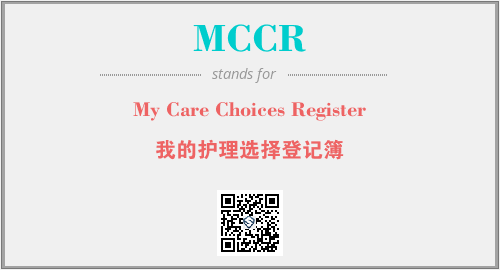 上述内容是“My Care Choices Register”作为“MCCR”的缩写,解释为“我的护理选择登记簿”时的信息,以及英文缩略词MCCR所代表的英文单词,其对应的中文拼音、详细解释以及在英文中的流行度和相关分类、应用领域及应用示例等。