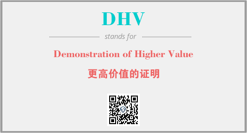 上述内容是“Demonstration of Higher Value”作为“DHV”的缩写,解释为“更高价值的证明”时的信息,以及英文缩略词DHV所代表的英文单词,其对应的中文拼音、详细解释以及在英文中的流行度和相关分类、应用领域及应用示例等。