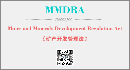 上述内容是“Mines and Minerals Development Regulation Act”作为“MMDRA”的缩写,解释为“《矿产开发管理法》”时的信息,以及英文缩略词MMDRA所代表的英文单词,其对应的中文拼音、详细解释以及在英文中的流行度和相关分类、应用领域及应用示例等。