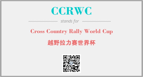 英文缩略词“CCRWC”经常作为“Cross Country Rally World Cup”的英文缩写来使用,中文表示:“越野拉力赛世界杯”。本文将详细介绍英文缩写词CCRWC所代表英文单词,其对应的中文拼音、详细解释以及在英语中的流行度。此外,还有关于缩略词CCRWC的分类、应用领域及相关应用示例等。