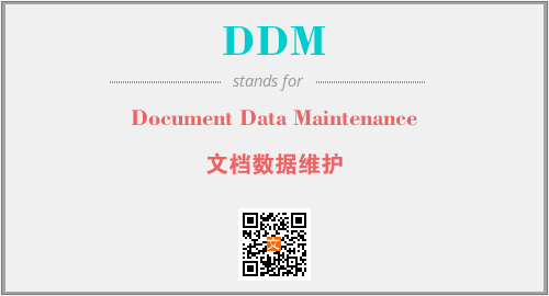 英文缩略词“DDM”经常作为“Document Data Maintenance”的英文缩写来使用,中文表示:“文档数据维护”。本文将详细介绍英文缩写词DDM所代表英文单词,其对应的中文拼音、详细解释以及在英语中的流行度。此外,还有关于缩略词DDM的分类、应用领域及相关应用示例等。