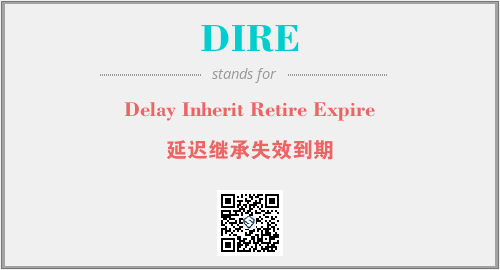 上述内容是“Delay Inherit Retire Expire”作为“DIRE”的缩写,解释为“延迟继承失效到期”时的信息,以及英文缩略词DIRE所代表的英文单词,其对应的中文拼音、详细解释以及在英文中的流行度和相关分类、应用领域及应用示例等。