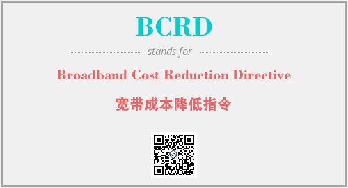 上述内容是“Broadband Cost Reduction Directive”作为“BCRD”的缩写,解释为“宽带成本降低指令”时的信息,以及英文缩略词BCRD所代表的英文单词,其对应的中文拼音、详细解释以及在英文中的流行度和相关分类、应用领域及应用示例等。