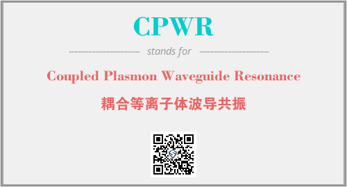 英文缩略词“CPWR”经常作为“Coupled Plasmon Waveguide Resonance”的英文缩写来使用,中文表示:“耦合等离子体波导共振”。本文将详细介绍英文缩写词CPWR所代表英文单词,其对应的中文拼音、详细解释以及在英语中的流行度。此外,还有关于缩略词CPWR的分类、应用领域及相关应用示例等。