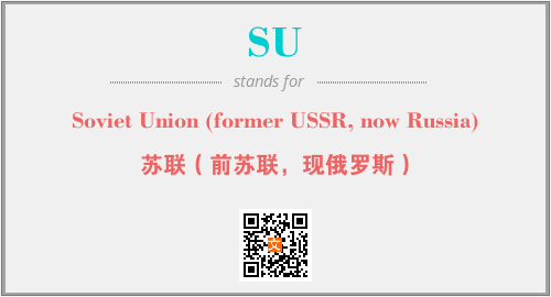 英文缩略词“SU”经常作为“Soviet Union (former USSR, now Russia)”的英文缩写来使用,中文表示:“苏联(前苏联,现俄罗斯)”。本文将详细介绍英文缩写词SU所代表英文单词,其对应的中文拼音、详细解释以及在英语中的流行度。此外,还有关于缩略词SU的分类、应用领域及相关应用示例等。