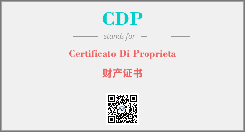 以上为Certificato Di Proprieta英文缩略词CDP的中文解释,以及该英文缩写在英语的流行度、分类和应用领域方面的信息。