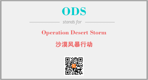 上述内容是“Operation Desert Storm”作为“ODS”的缩写,解释为“沙漠风暴行动”时的信息,以及英文缩略词ODS所代表的英文单词,其对应的中文拼音、详细解释以及在英文中的流行度和相关分类、应用领域及应用示例等。