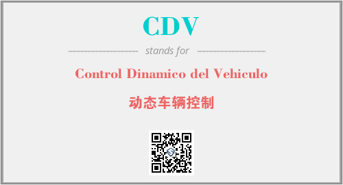 英文缩略词“CDV”经常作为“Control Dinamico del Vehiculo”的英文缩写来使用,中文表示:“动态车辆控制”。本文将详细介绍英文缩写词CDV所代表英文单词,其对应的中文拼音、详细解释以及在英语中的流行度。此外,还有关于缩略词CDV的分类、应用领域及相关应用示例等。