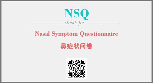 英文缩略词“NSQ”经常作为“Nasal Symptom Questionnaire”的英文缩写来使用,中文表示:“鼻症状问卷”。本文将详细介绍英文缩写词NSQ所代表英文单词,其对应的中文拼音、详细解释以及在英语中的流行度。此外,还有关于缩略词NSQ的分类、应用领域及相关应用示例等。