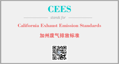 上述内容是“California Exhaust Emission Standards”作为“CEES”的缩写,解释为“加州废气排放标准”时的信息,以及英文缩略词CEES所代表的英文单词,其对应的中文拼音、详细解释以及在英文中的流行度和相关分类、应用领域及应用示例等。