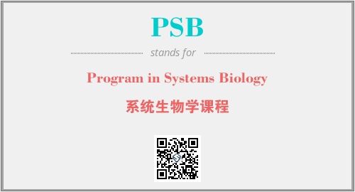 上述内容是“Program in Systems Biology”作为“PSB”的缩写,解释为“系统生物学课程”时的信息,以及英文缩略词PSB所代表的英文单词,其对应的中文拼音、详细解释以及在英文中的流行度和相关分类、应用领域及应用示例等。