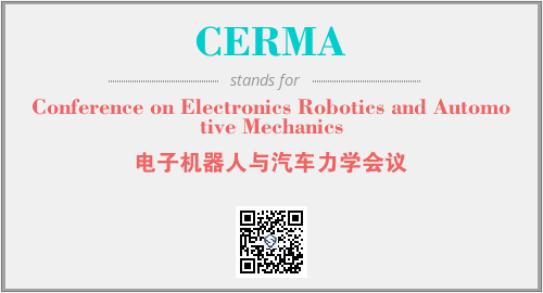 上述内容是“Conference on Electronics Robotics and Automotive Mechanics”作为“CERMA”的缩写,解释为“电子机器人与汽车力学会议”时的信息,以及英文缩略词CERMA所代表的英文单词,其对应的中文拼音、详细解释以及在英文中的流行度和相关分类、应用领域及应用示例等。