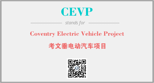 上述内容是“Coventry Electric Vehicle Project”作为“CEVP”的缩写,解释为“考文垂电动汽车项目”时的信息,以及英文缩略词CEVP所代表的英文单词,其对应的中文拼音、详细解释以及在英文中的流行度和相关分类、应用领域及应用示例等。