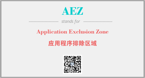 英文缩略词“AEZ”经常作为“Application Exclusion Zone”的英文缩写来使用,中文表示:“应用程序排除区域”。本文将详细介绍英文缩写词AEZ所代表英文单词,其对应的中文拼音、详细解释以及在英语中的流行度。此外,还有关于缩略词AEZ的分类、应用领域及相关应用示例等。