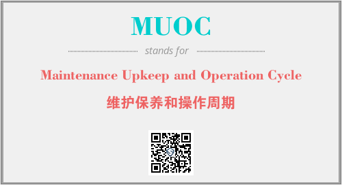 上述内容是“Maintenance Upkeep and Operation Cycle”作为“MUOC”的缩写,解释为“维护保养和操作周期”时的信息,以及英文缩略词MUOC所代表的英文单词,其对应的中文拼音、详细解释以及在英文中的流行度和相关分类、应用领域及应用示例等。