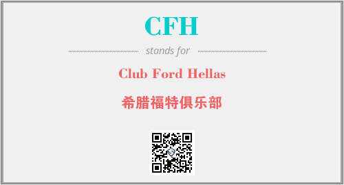 英文缩略词“CFH”经常作为“Club Ford Hellas”的英文缩写来使用,中文表示:“希腊福特俱乐部”。本文将详细介绍英文缩写词CFH所代表英文单词,其对应的中文拼音、详细解释以及在英语中的流行度。此外,还有关于缩略词CFH的分类、应用领域及相关应用示例等。