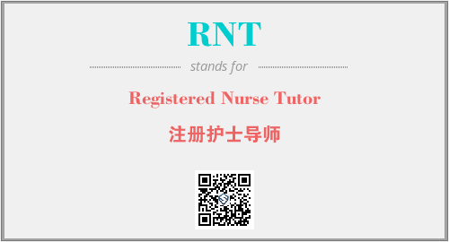 上述内容是“Registered Nurse Tutor”作为“RNT”的缩写,解释为“注册护士导师”时的信息,以及英文缩略词RNT所代表的英文单词,其对应的中文拼音、详细解释以及在英文中的流行度和相关分类、应用领域及应用示例等。
