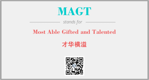 英文缩略词“MAGT”经常作为“Most Able Gifted and Talented”的英文缩写来使用,中文表示:“才华横溢”。本文将详细介绍英文缩写词MAGT所代表英文单词,其对应的中文拼音、详细解释以及在英语中的流行度。此外,还有关于缩略词MAGT的分类、应用领域及相关应用示例等。