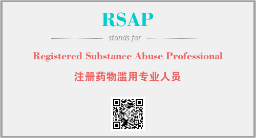 上述内容是“Registered Substance Abuse Professional”作为“RSAP”的缩写,解释为“注册药物滥用专业人员”时的信息,以及英文缩略词RSAP所代表的英文单词,其对应的中文拼音、详细解释以及在英文中的流行度和相关分类、应用领域及应用示例等。