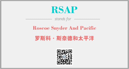 上述内容是“Roscoe Snyder And Pacific”作为“RSAP”的缩写,解释为“罗斯科·斯奈德和太平洋”时的信息,以及英文缩略词RSAP所代表的英文单词,其对应的中文拼音、详细解释以及在英文中的流行度和相关分类、应用领域及应用示例等。
