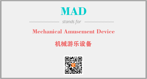 英文缩略词“MAD”经常作为“Mechanical Amusement Device”的英文缩写来使用,中文表示:“机械游乐设备”。本文将详细介绍英文缩写词MAD所代表英文单词,其对应的中文拼音、详细解释以及在英语中的流行度。此外,还有关于缩略词MAD的分类、应用领域及相关应用示例等。