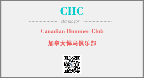 英文缩略词“CHC”经常作为“Canadian Hummer Club”的英文缩写来使用,中文表示:“加拿大悍马俱乐部”。本文将详细介绍英文缩写词CHC所代表英文单词,其对应的中文拼音、详细解释以及在英语中的流行度。此外,还有关于缩略词CHC的分类、应用领域及相关应用示例等。