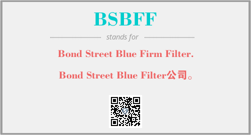 上述内容是“Bond Street Blue Firm Filter.”作为“BSBFF”的缩写,解释为“Bond Street Blue Filter公司。”时的信息,以及英文缩略词BSBFF所代表的英文单词,其对应的中文拼音、详细解释以及在英文中的流行度和相关分类、应用领域及应用示例等。