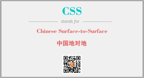 上述内容是“Chinese Surface-to-Surface”作为“CSS”的缩写,解释为“中国地对地”时的信息,以及英文缩略词CSS所代表的英文单词,其对应的中文拼音、详细解释以及在英文中的流行度和相关分类、应用领域及应用示例等。