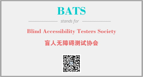 英文缩略词“BATS”经常作为“Blind Accessibility Testers Society”的英文缩写来使用,中文表示:“盲人无障碍测试协会”。本文将详细介绍英文缩写词BATS所代表英文单词,其对应的中文拼音、详细解释以及在英语中的流行度。此外,还有关于缩略词BATS的分类、应用领域及相关应用示例等。