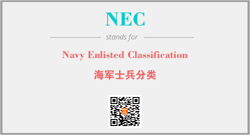 上述内容是“Navy Enlisted Classification”作为“NEC”的缩写,解释为“海军士兵分类”时的信息,以及英文缩略词NEC所代表的英文单词,其对应的中文拼音、详细解释以及在英文中的流行度和相关分类、应用领域及应用示例等。