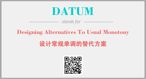 以上为Designing Alternatives To Usual Monotony英文缩略词DATUM的中文解释,以及该英文缩写在英语的流行度、分类和应用领域方面的信息。