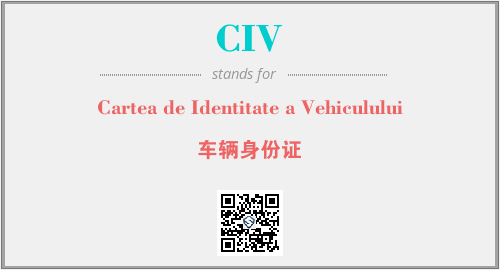 上述内容是“Cartea de Identitate a Vehiculului”作为“CIV”的缩写,解释为“车辆身份证”时的信息,以及英文缩略词CIV所代表的英文单词,其对应的中文拼音、详细解释以及在英文中的流行度和相关分类、应用领域及应用示例等。