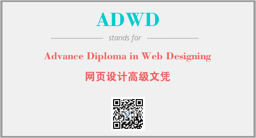 英文缩略词“ADWD”经常作为“Advance Diploma in Web Designing”的英文缩写来使用,中文表示:“网页设计高级文凭”。本文将详细介绍英文缩写词ADWD所代表英文单词,其对应的中文拼音、详细解释以及在英语中的流行度。此外,还有关于缩略词ADWD的分类、应用领域及相关应用示例等。