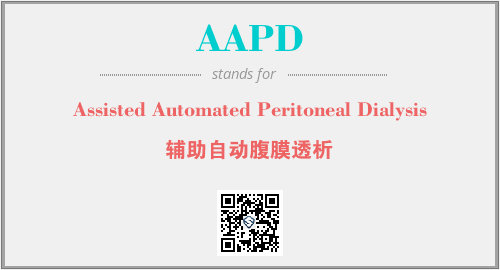 上述内容是“Assisted Automated Peritoneal Dialysis”作为“AAPD”的缩写,解释为“辅助自动腹膜透析”时的信息,以及英文缩略词AAPD所代表的英文单词,其对应的中文拼音、详细解释以及在英文中的流行度和相关分类、应用领域及应用示例等。