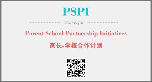 上述内容是“Parent School Partnership Initiatives”作为“PSPI”的缩写,解释为“家长-学校合作计划”时的信息,以及英文缩略词PSPI所代表的英文单词,其对应的中文拼音、详细解释以及在英文中的流行度和相关分类、应用领域及应用示例等。