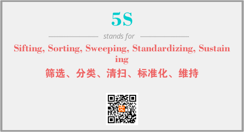 英文缩略词“5S”经常作为“Sifting, Sorting, Sweeping, Standardizing, Sustaining”的英文缩写来使用,中文表示:“筛选、分类、清扫、标准化、维持”。本文将详细介绍英文缩写词5S所代表英文单词,其对应的中文拼音、详细解释以及在英语中的流行度。此外,还有关于缩略词5S的分类、应用领域及相关应用示例等。