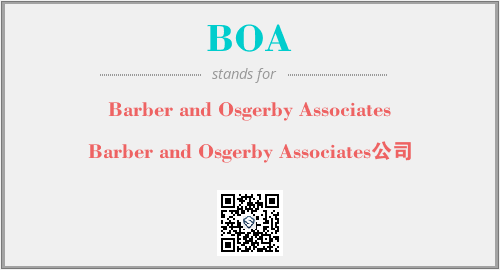 上述内容是“Barber and Osgerby Associates”作为“BOA”的缩写,解释为“Barber and Osgerby Associates公司”时的信息,以及英文缩略词BOA所代表的英文单词,其对应的中文拼音、详细解释以及在英文中的流行度和相关分类、应用领域及应用示例等。