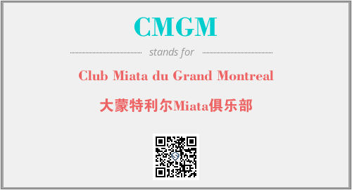 英文缩略词“CMGM”经常作为“Club Miata du Grand Montreal”的英文缩写来使用,中文表示:“大蒙特利尔Miata俱乐部”。本文将详细介绍英文缩写词CMGM所代表英文单词,其对应的中文拼音、详细解释以及在英语中的流行度。此外,还有关于缩略词CMGM的分类、应用领域及相关应用示例等。