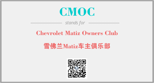 上述内容是“Chevrolet Matiz Owners Club”作为“CMOC”的缩写,解释为“雪佛兰Matiz车主俱乐部”时的信息,以及英文缩略词CMOC所代表的英文单词,其对应的中文拼音、详细解释以及在英文中的流行度和相关分类、应用领域及应用示例等。