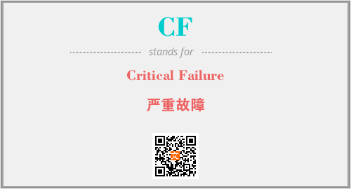 上述内容是“Critical Failure”作为“CF”的缩写,解释为“严重故障”时的信息,以及英文缩略词CF所代表的英文单词,其对应的中文拼音、详细解释以及在英文中的流行度和相关分类、应用领域及应用示例等。