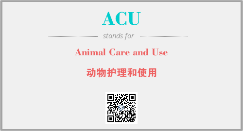 英文缩略词“ACU”经常作为“Animal Care and Use”的英文缩写来使用,中文表示:“动物护理和使用”。本文将详细介绍英文缩写词ACU所代表英文单词,其对应的中文拼音、详细解释以及在英语中的流行度。此外,还有关于缩略词ACU的分类、应用领域及相关应用示例等。
