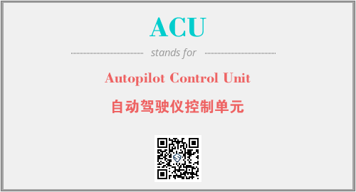 英文缩略词“ACU”经常作为“Autopilot Control Unit”的英文缩写来使用,中文表示:“自动驾驶仪控制单元”。本文将详细介绍英文缩写词ACU所代表英文单词,其对应的中文拼音、详细解释以及在英语中的流行度。此外,还有关于缩略词ACU的分类、应用领域及相关应用示例等。
